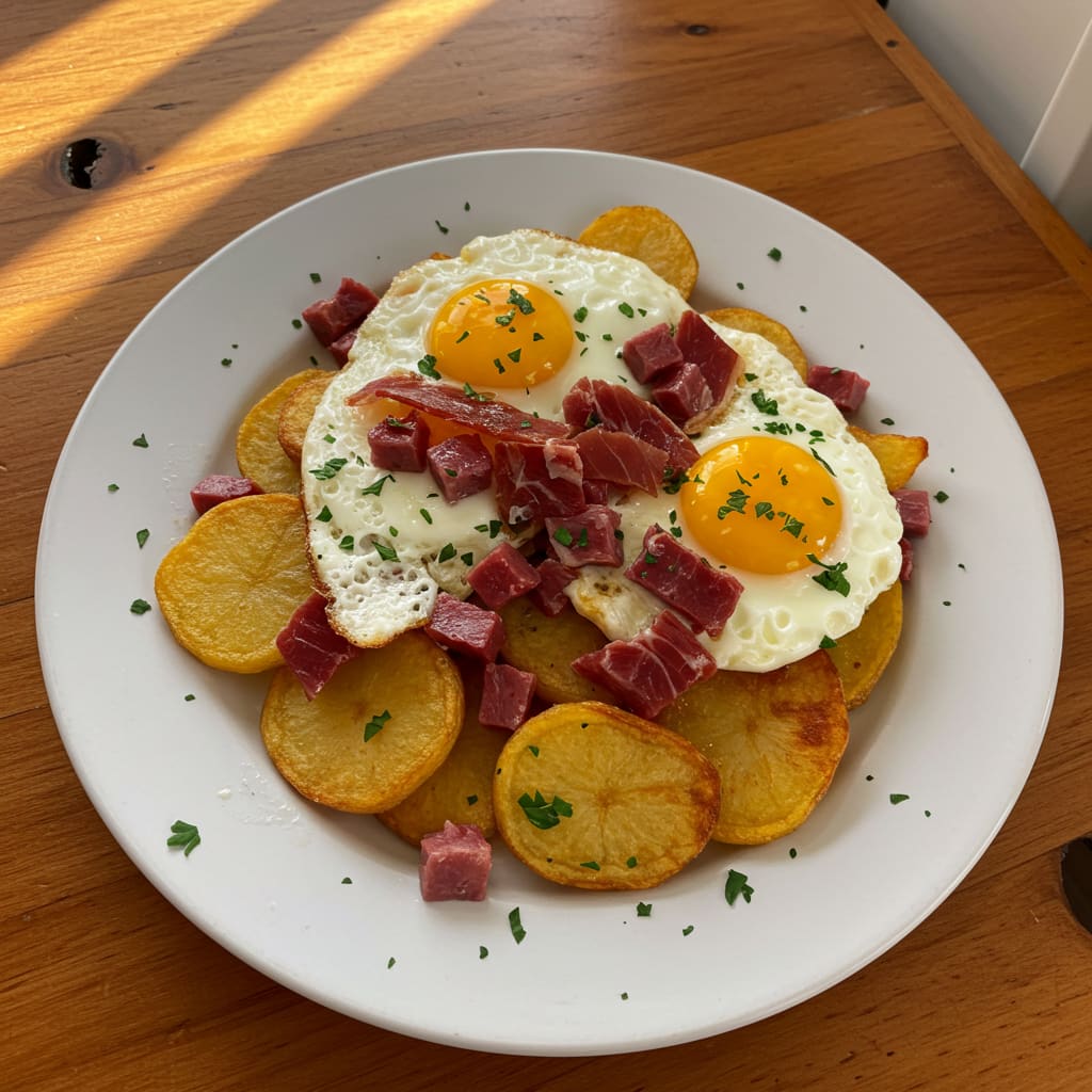 Tortilla de patata, jamón y bonito